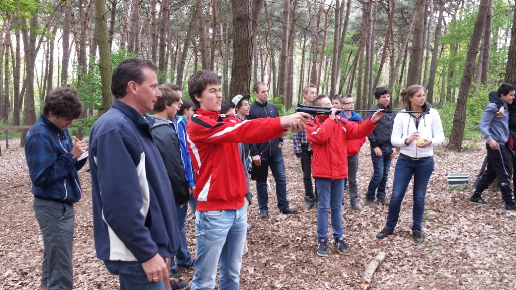 Dan is onze tijd om te schitteren aangebroken. We worden in 2 groepen van 11 gedeeld en zijn klaar om te beginnen. Afwisselend mogen we proeven van het echte werk, we leren schieten met een boog, kruisboog, blaaspijp, pistool op luchtdruk en een geweer op luchtdruk. Per speler worden de punten van de verschillende disciplines bijgehouden, wat zorgt voor de volgende uitslag: