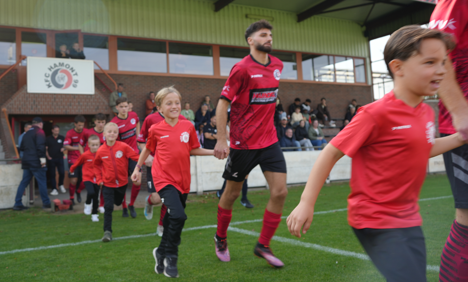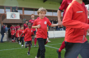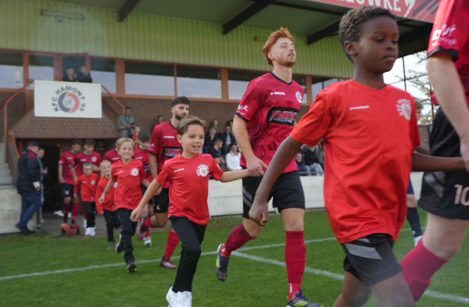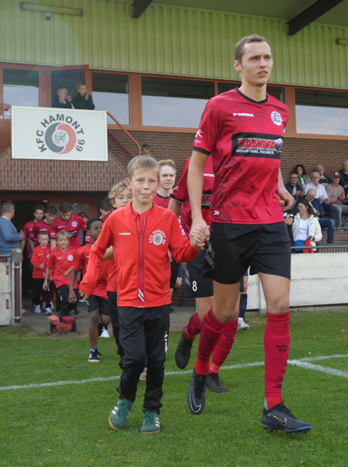 De U9 mochten op zaterdag mee oplopen met KFC Hamont 99 A bij de thuiswedstrijd tegen THES B. Altijd een leuke belevenis voor deze jongens.