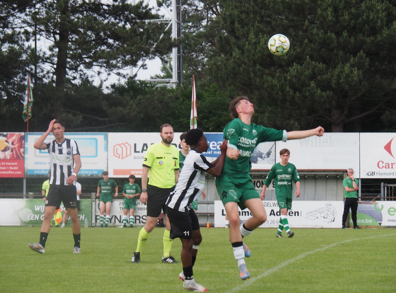 Rutger in actie op Euro-Cup 2025Elke voetbalclub wordt verondersteld om scheidsrechters en assistent-scheidsrechters (in de volksmond ‘grensrechters’ genoemd) aangesloten te hebben. KFC Hamont 99 heeft er zo ook een aantal, waarvan er nu twee de promotie gemaakt hebben naar 1e amateur als assistent-scheidsrechters: Rutger Van Acker en Wouter Bollen.