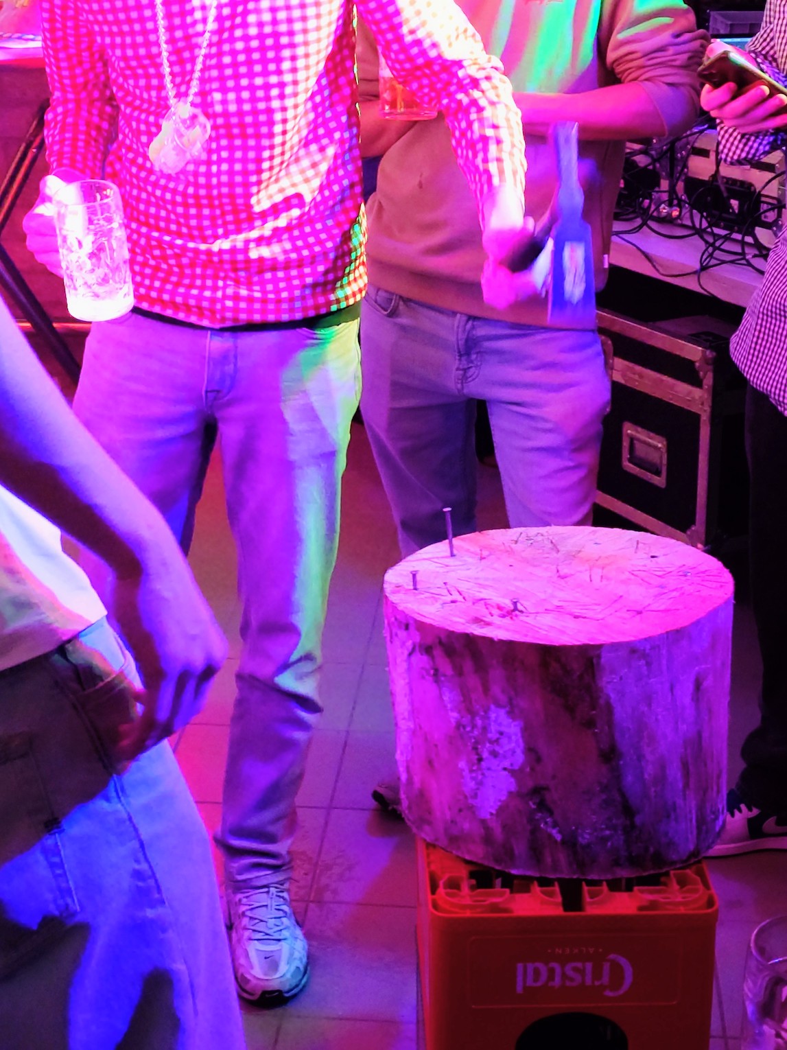 Het thema was “Après ski”, waar lederhosen en zelfs volledige skipakken van de zolder gehaald werden. “Nagelen” kon uiteraard ook niet ontbreken.