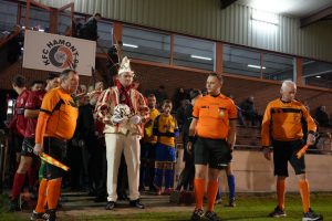 Op zaterdag 24 januari 2026 kwamen Prins Sven I en de Teutepeuters langs op ‘t Leeuwke. Naar jaarlijkse traditie schonk de nieuwe prins een matchbal en gaf hij de aftrap.